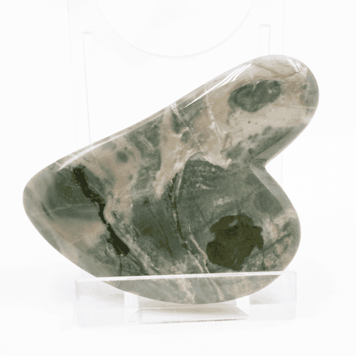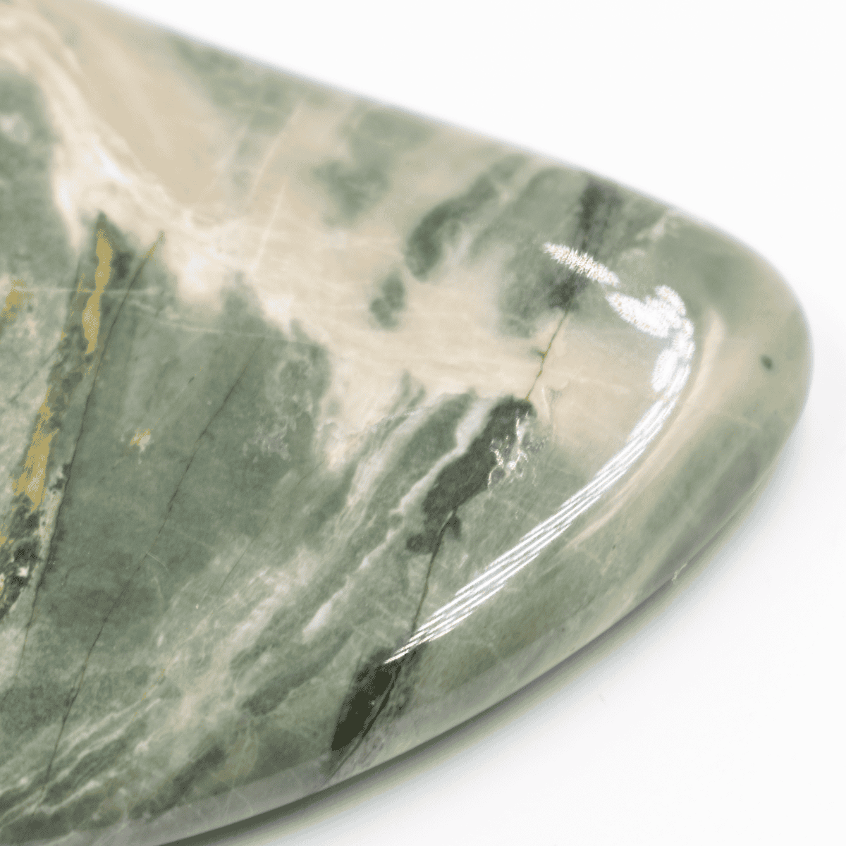Gua Sha je skvělým pomocníkem při lymfatické masáži obličeje, krku a dekoltu. Pomáhá redukovat otoky, zlepšuje cirkulaci krve, rozproudí lymfu a pomáhá krémům nebo sérům pronikat hlouběji do pleti.
