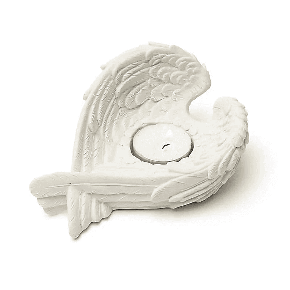 Skleněný svícen s obrázkem andělských křídel.