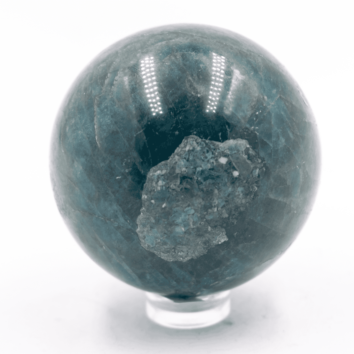 Apatit podporuje tvorbu nových buněk a zpevnění kosterního a kloubního systému. Sjednocuje ducha i tělo a eliminuje přílišné nebo nedostatečné toky energie, které jsou projevem malátnosti, únavy nebo v opačném případě hyperaktivita. Modrý apatit je nositelem vizí do budoucnosti i pohledu do minulých životů.
