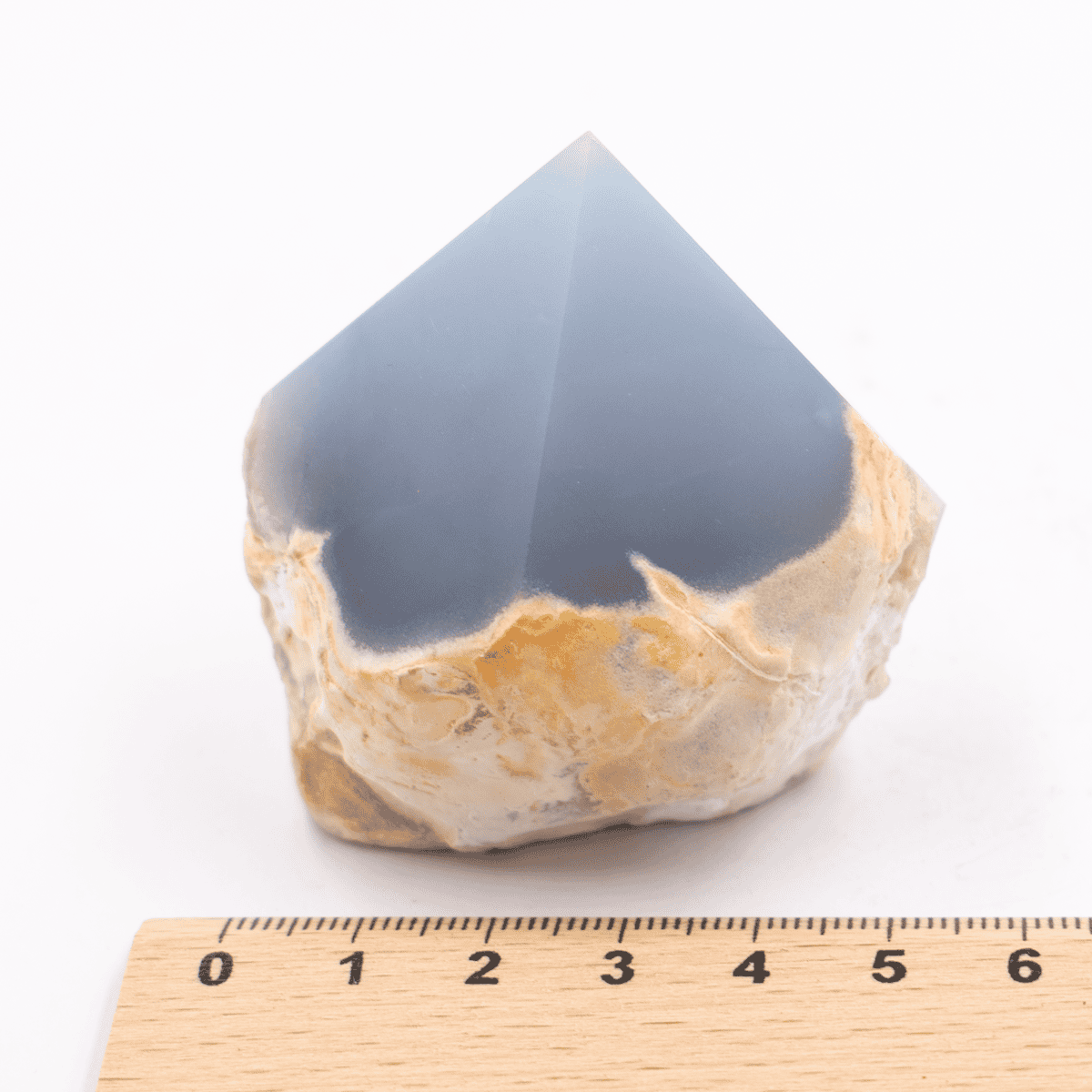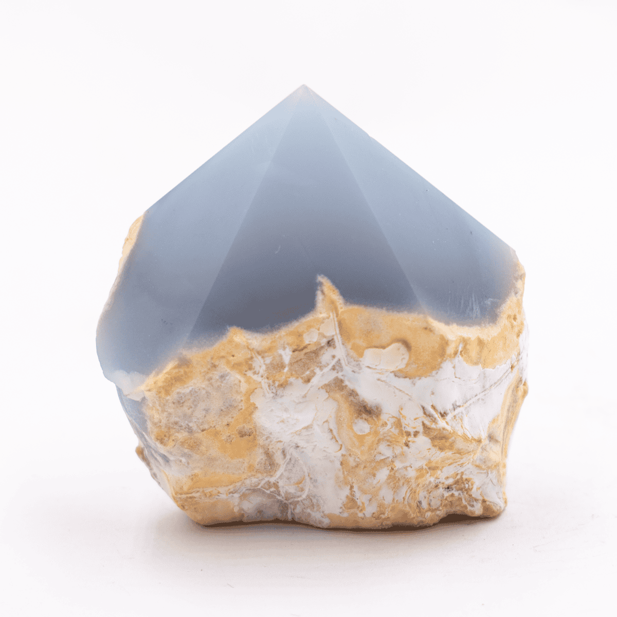 Modrý chalcedon zklidňuje mysl a pocity. Pomáhá nám ve chvílích beznaděje, posiluje naši víru v lepši budoucnost. Učí nás nezaobírat se malichernostmi každodenního života a brát život takový, jaký je. Pomáhá nám žít lehce, přirozeně a s nadhledem. Zahání smutek, strach a deprese. Modrý chalcedon posiluje mezilidské vztahy. Harmonizuje mysl, tělo a ducha.