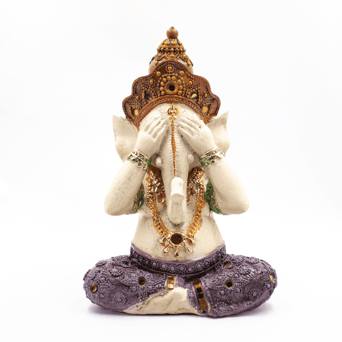 Ganéšova variace slavných tří moudrých opic, které pocházejí z Japonska, ale našly si cestu i do hinduistických a buddhistických kultur. Připomínají nám, abychom žili dobře, tím, že používáme naše myšlenky, řeč a činy pozitivním způsobem.