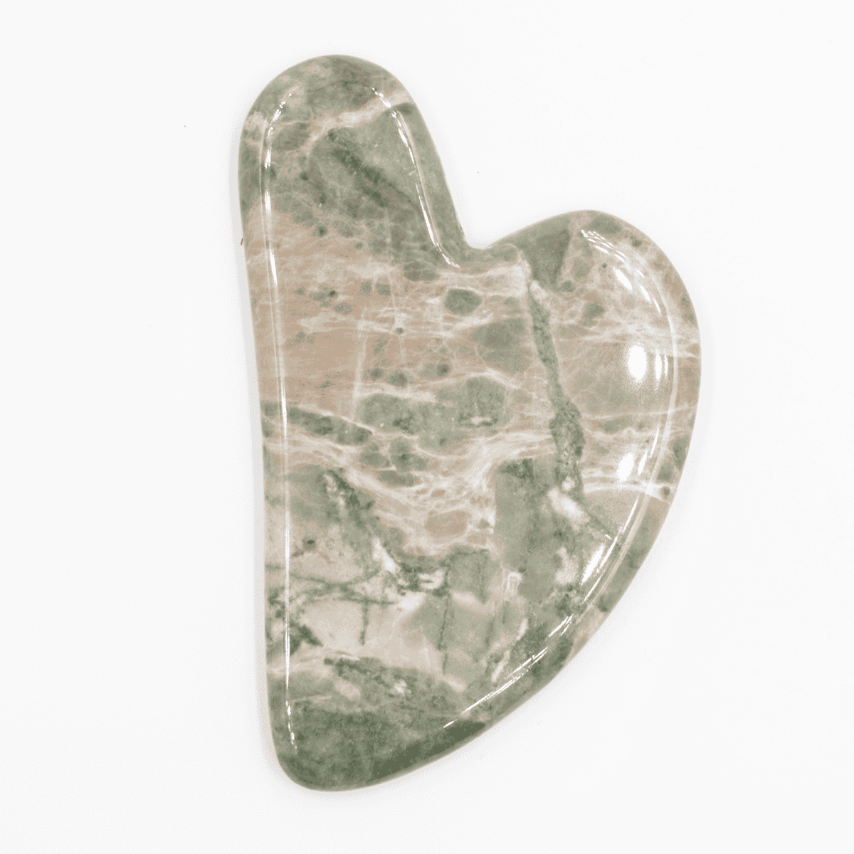 Gua Sha je skvělým pomocníkem při lymfatické masáži obličeje, krku a dekoltu. Pomáhá redukovat otoky, zlepšuje cirkulaci krve, rozproudí lymfu a pomáhá krémům nebo sérům pronikat hlouběji do pleti.