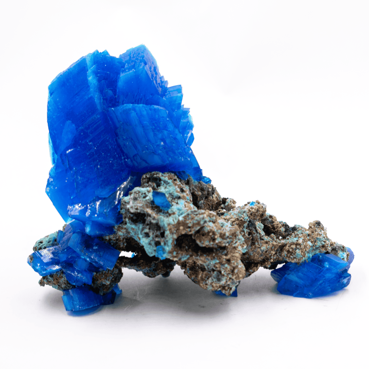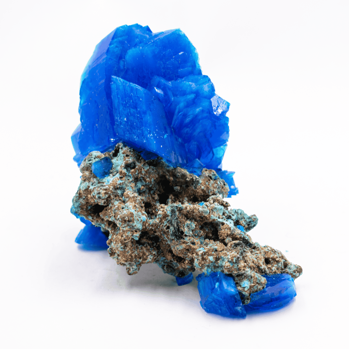 Uměle vyrobené krystaly modré skalice.