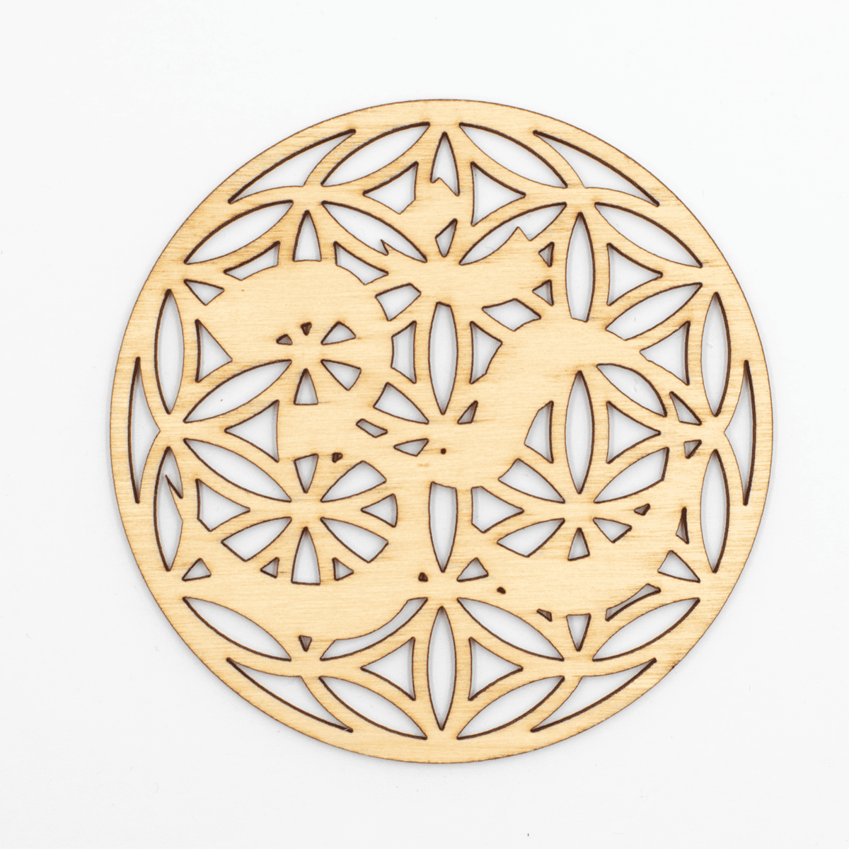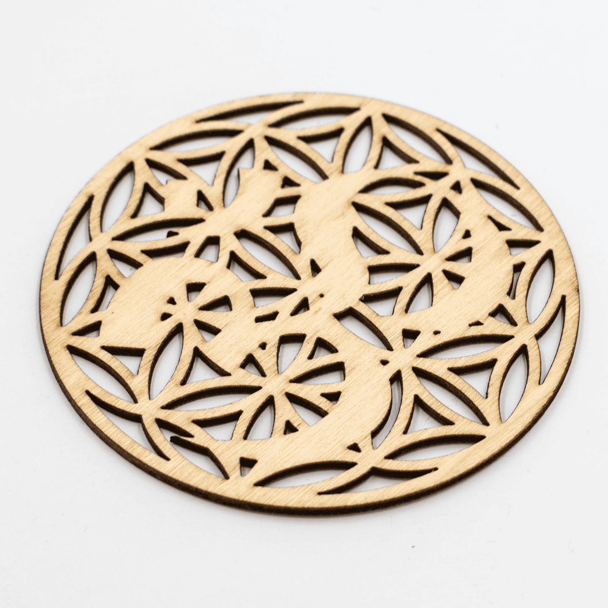 Dřevěný vyřezávaný podtácek do tvaru symbolu Óm.