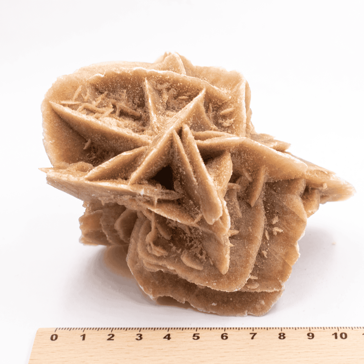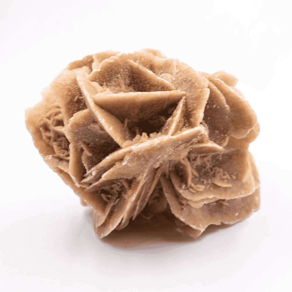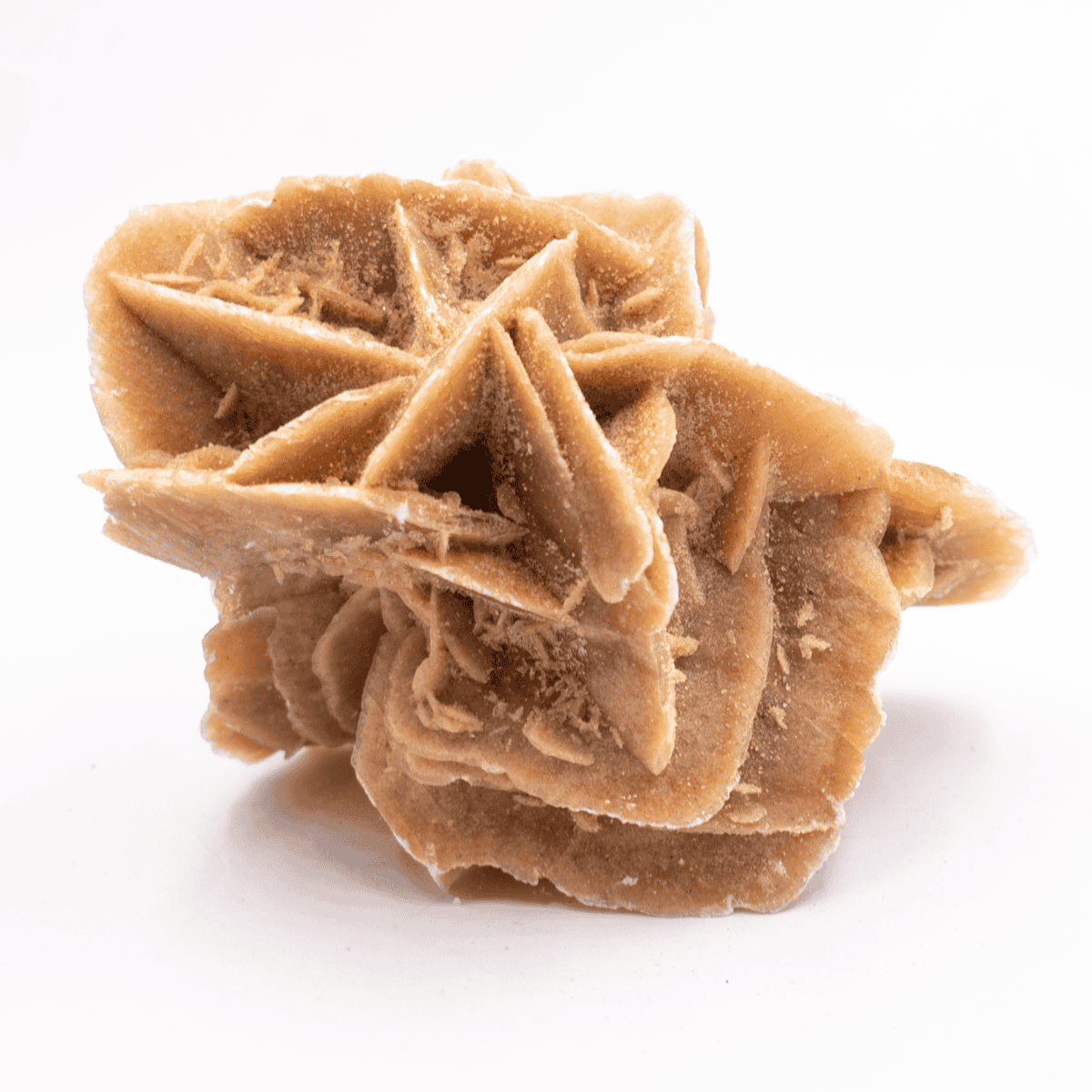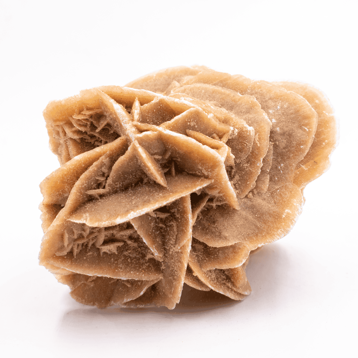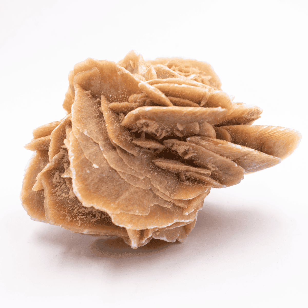 Pouštní růže jsou agregáty sádrovce s uzavřeninami písku v hnědé a okrové barvě.