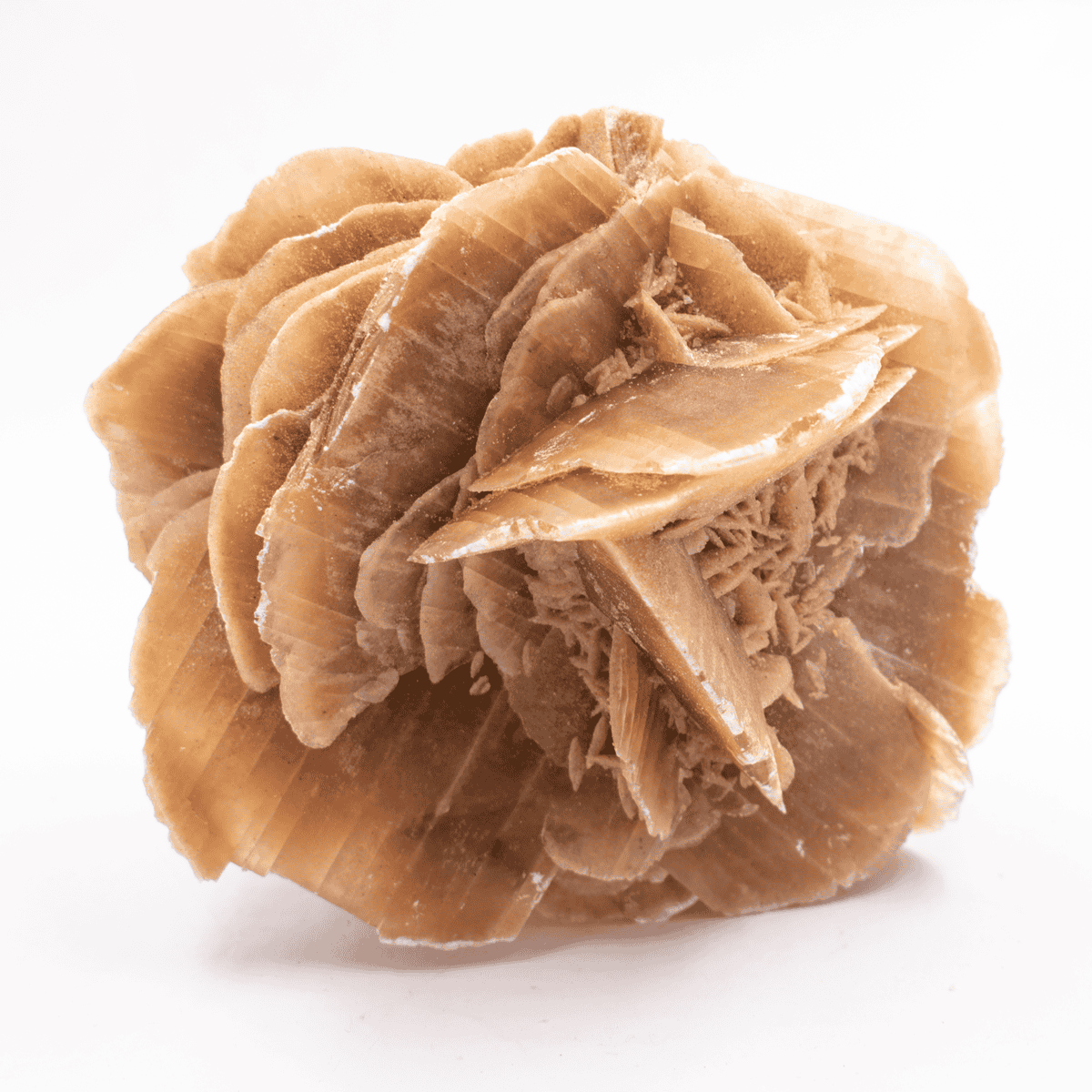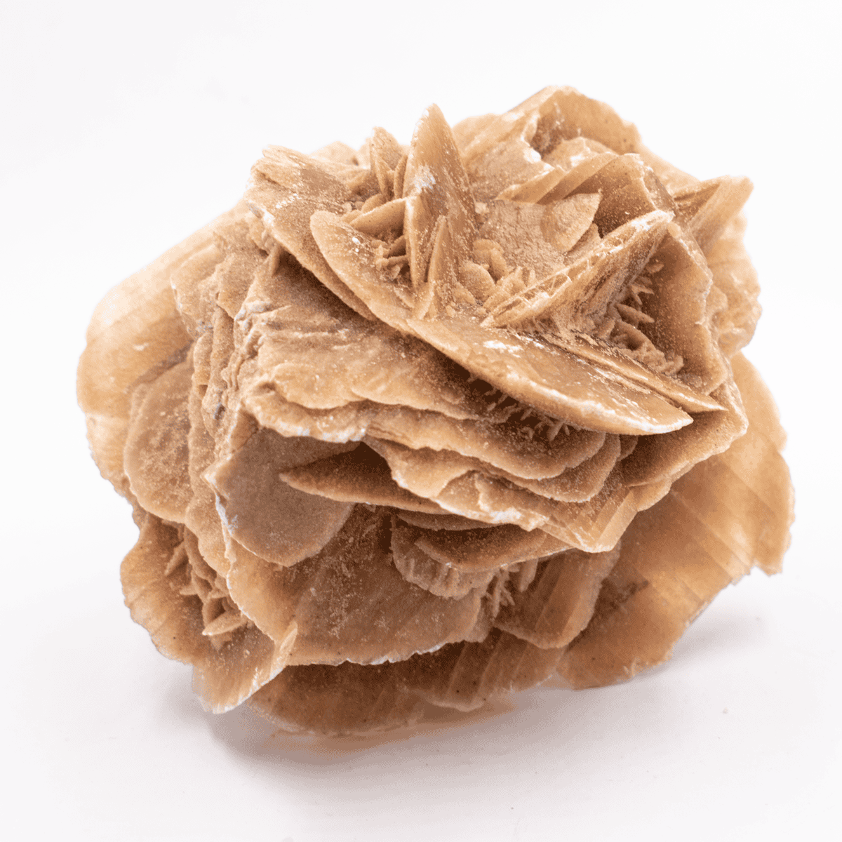Pouštní růže jsou agregáty sádrovce s uzavřeninami písku v hnědé a okrové barvě.