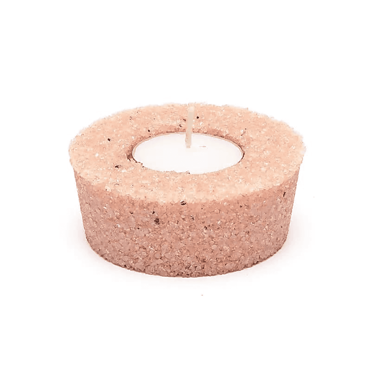 Kulatý svícen na čajovou svíčku, vyrobený z kousků růženínu.