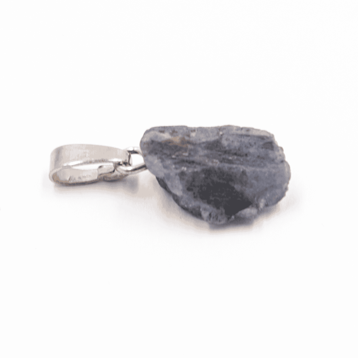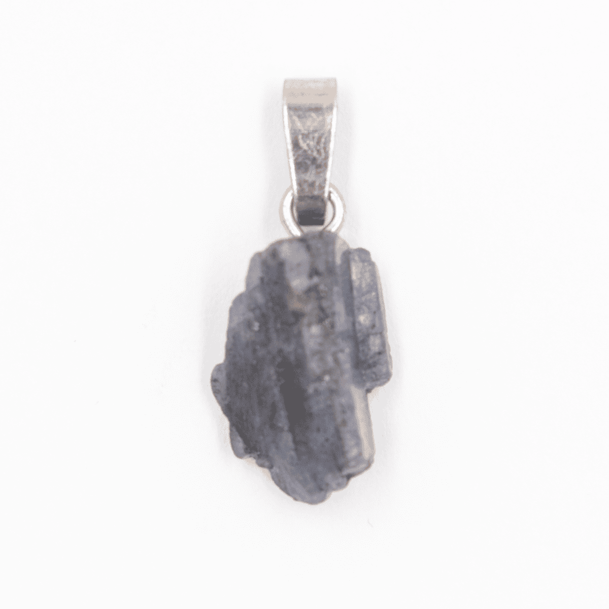 Surový kámen tanzanit přívěšek. Kámen tanzanitu se zřetelně modrým až fialovým vybarvením. Stříbrný úchyt.