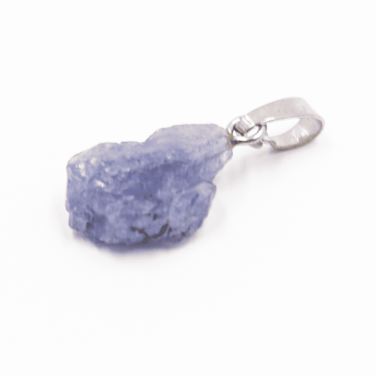 Surový kámen tanzanit přívěšek. Kámen tanzanitu se zřetelně modrým až fialovým vybarvením. Stříbrný úchyt.