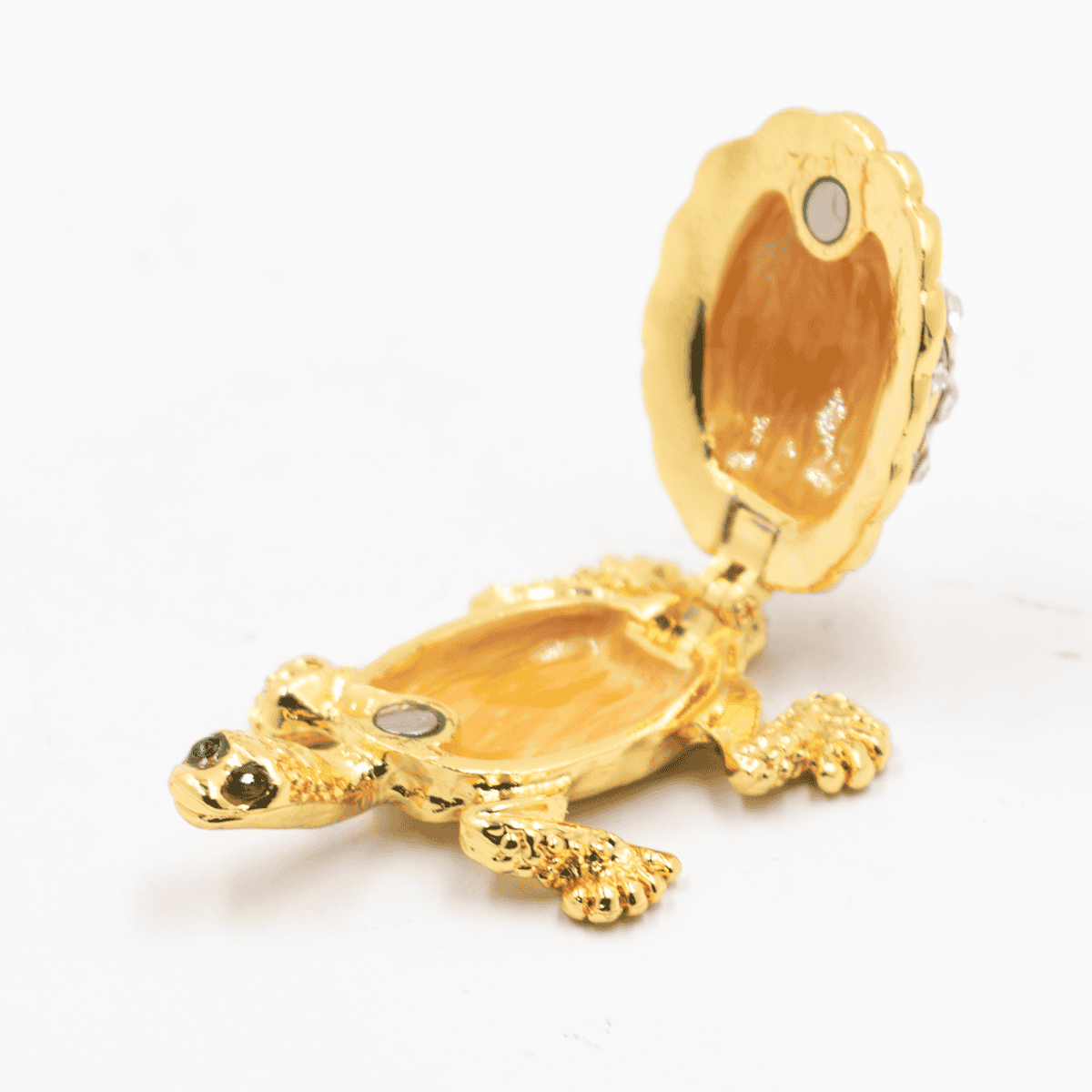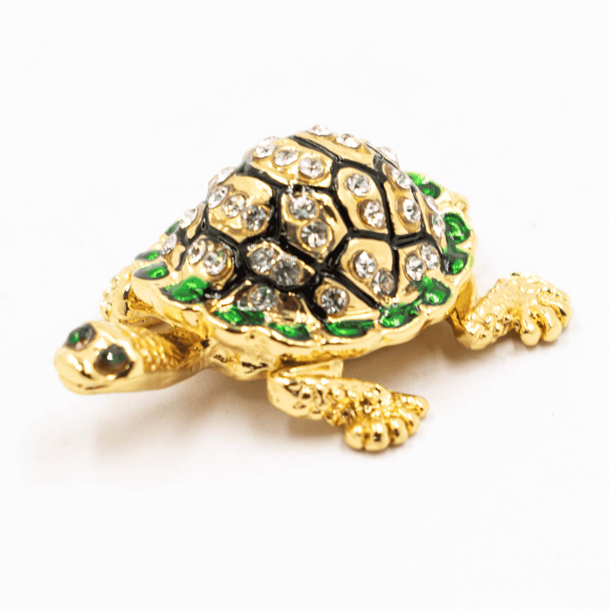 Mosazná soška želvy, kterou lze otevřít a použít jako truhličku na drobné poklady.
